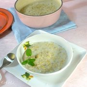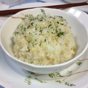 鲈鱼肉片、冷白饭、鲈鱼骨头高汤、欧芹香草奶油、欧芹叶、盐、黑胡椒粉、白葡萄酒。