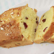 黄油、低筋面粉、细砂糖、鸡蛋、香草精、葡萄干、蔓越莓干、朗姆酒、黄油、镜面果膏、杏仁果碎。