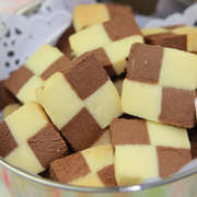 低筋面粉、黄油、糖粉、鸡蛋液、香草精、低筋面粉、可可粉、黄油、糖粉、鸡蛋液、香草精、全蛋液。