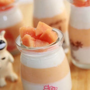 牛奶、椰浆、细砂糖、鱼胶粉、牛奶、木瓜、细砂糖、鱼胶粉、牛奶、淡奶油、细砂糖、鱼胶粉。