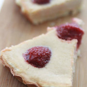 低筋面粉、盐、黄油、冷水、奶油奶酪、鸡蛋、草莓罐头糖水、香草精、罐头草莓。