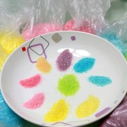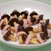 白色方形棉花糖、彩色巧克力、细长条的饼干。
