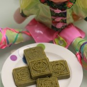 高筋粉、低筋粉、糖浆、枧水、水蜜桃馅、奶黄馅。