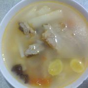 排骨、山药、番茄、白果、老姜、盐、胡椒粉、味精。