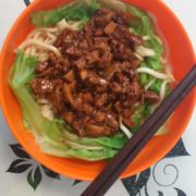 面粉、生菜、大肉、炸酱、葱、蒜、盐、花椒、鸡。