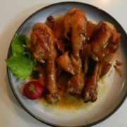 鸡腿、盐、酱油、黑胡椒、蜂蜜、冰糖、姜、红酒、大料。