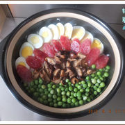 大米、糯米、小香菇、豌豆、鸡蛋、腊肠、生抽、蚝油、食用油、寿司酱油。