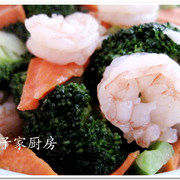 西兰花、虾仁、胡萝卜、盐、鸡精。