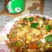 广味香肠、辣椒、黄瓜、青豆、藕、油、盐、生抽、老抽、蚝油。