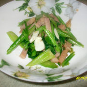 西芹、蛋清肠、油、生抽、盐、葱花。