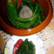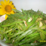 扁豆、蒜、小红椒、盐、生抽、植物油、麻油。