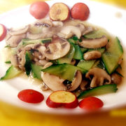 鲜菇、葱、黄瓜、淀粉、盐、生抽、鸡精。