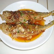 黄花鱼、油盐、生抽、鱼露、姜、糖、番茄酱、蒜。