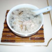 大米、淡菜、白菜干、瘦肉、清水、油、姜、生抽、鸡精、盐。