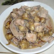 鸡翅、干香菇、油、姜丝、生粉、糖、客家黄酒、鸡精、盐、胡椒粉、生抽。