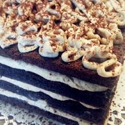 黑巧克力、黄油、牛奶、细砂糖、鸡蛋、低筋面粉、可可粉、泡打粉、熟栗子仁、淡奶油、黄油、糖粉、朗姆酒。