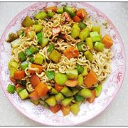 方便面、黄瓜、葱、胡萝卜、青椒、生抽、蚝油、方便面盐包。
