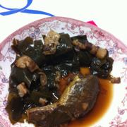 海带、五花肉、黄花鱼、白菜、葱、姜、老抽、盐、醋。