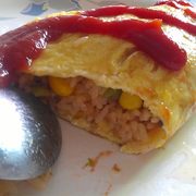 米饭、鸡蛋、西红柿、火腿、玉米、辣椒。