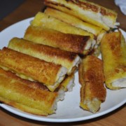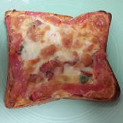 土司面包、培根肉、烤肠、虾、豌豆粒、玉米粒、披萨酱、色拉酱、芝士。