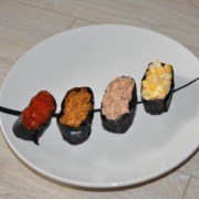 米饭、包饭紫菜、寿司醋、肉松、沙拉酱、千岛酱、金枪鱼罐头、深海鱼籽。