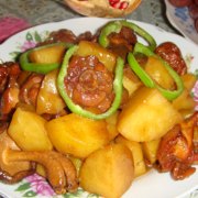 猪小排、红薯、糖、盐、料酒、酱油、豆瓣酱、姜、葱、青花椒、八角、大料、干辣椒、鸡精。