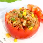 西红柿、鸡腿、洋葱、嫩玉米粒、青椒、火腿肠、葱姜蒜末、生抽、蚝油、香油、花生油、盐。