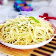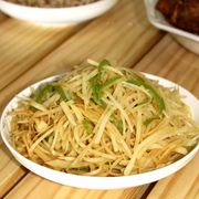 土豆、蒜苗、尖椒、花生油、盐、醋、蚝油。