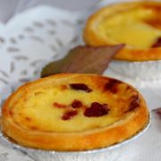 蛋挞皮、蛋黄、牛奶、淡奶油、低筋面粉、蔓越莓干、葡萄干、细砂糖。