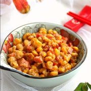 嫩玉米粒、咸鸭蛋蛋黄、火腿肠、玉米淀粉、花生油。
