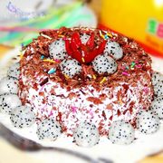 鸡蛋、牛奶、白糖、低筋面粉、可可粉、玉米油、鸡蛋清、柠檬汁、糖粉、火龙果、小西红柿、巧克力、糖针、糖珠。