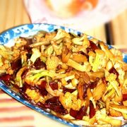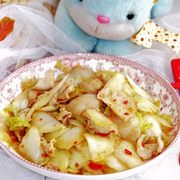 大白菜、带皮肥瘦肉、自制剁椒、盐、醋、花生油。