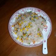米饭、青豆、玉米粒、火腿肠、盐、胡椒粉、五香粉。