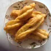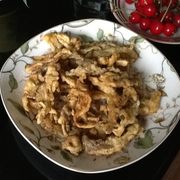 新鲜平菇、面粉、鸡蛋、盐、五香粉、椒盐粉。