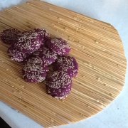 紫薯、糯米面粉、糖粉、豆沙、清油、白芝麻、牛奶。