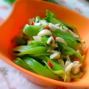芥菜、蒜片、排骨汤、枸杞、盐、油、鸡精。