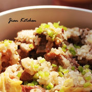 肋排、糯米、白菜叶。