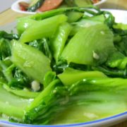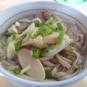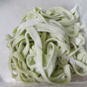 荞麦面、白菜、排骨、火腿肠、蒜末、葱花、盐、鸡精。