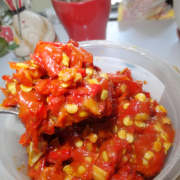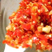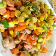 玉米丁、火腿丁、瘦肉丁、红萝卜丁、剁椒、姜蒜丁。