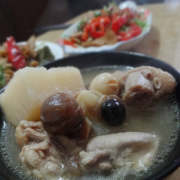 走地鸡、山药、香菇、姜 葱 蒜、小辣椒、盐、鸡精、五香粉、生抽。