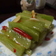 莴笋、蒜头、香辣酱、盐、醋、生抽。