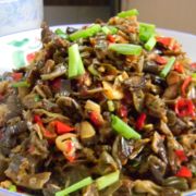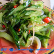 海蛰丝、黄瓜、辣椒、香肠、姜蒜、香菜、鸡精、盐。