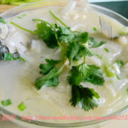 鲫鱼、萝卜丝、姜、葱、蒜、香菜、盐、鸡精。