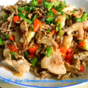 鸡腿、香菇、茶树菇、笋干、青椒、红椒、姜葱蒜、鸡蛋精、五香粉、鸡精。