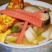 年糕、火腿、花菇、姜、蒜、蒜苗。