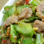 苦瓜、瘦肉、剁椒、姜、葱、蒜、盐、鸡精、十三香粉、生抽。