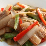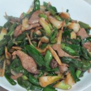 青蒜、精肉丝、冬笋丝、油、盐、料酒。