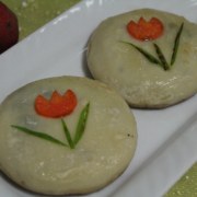 面粉、荠菜肉末馅、胡萝卜、蒜薹、油、盐。