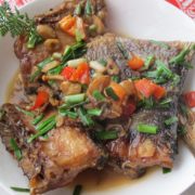 胖头鱼干、红椒、青蒜叶、姜、蒜、油、砂糖、料酒、味极鲜酱油。