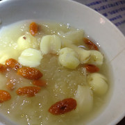 磨皮白莲、银耳、百合、枸杞、冰糖。
